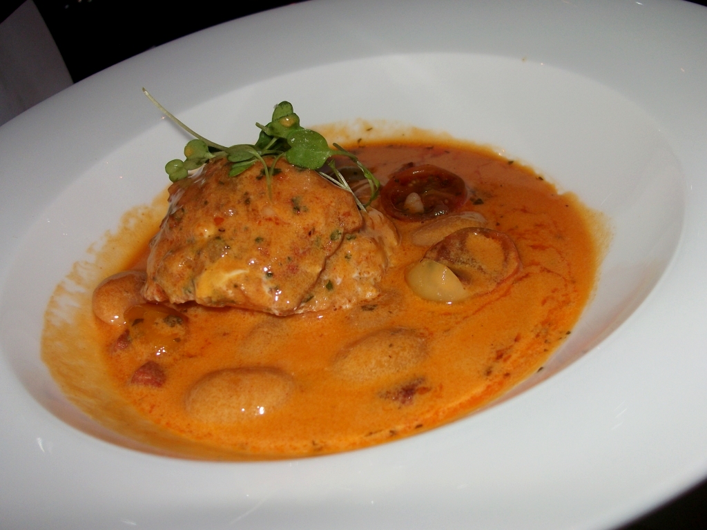 Our 2nd course was a Crispy Cod Brandade, with a lovely sweet potato cream, brandade, parsley jus and garlic paired with a 2008 Oliver LaFlaine “les setilles” Bourgogne from Burgundy, France. Not only was this dish beautifully presented it was as delightful to my palate as it was to my eyes.
