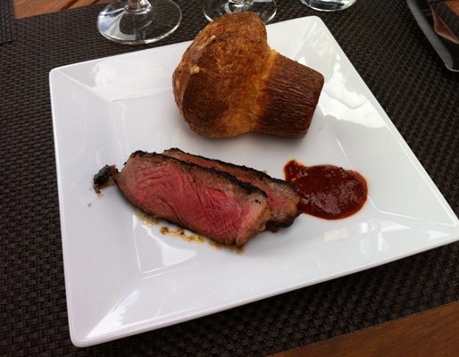 Tourondel was forthcoming with personal techniques, such as par-broiling certain cuts before grilling and proper resting practices. At the end of the hour, guests were treated to a preparation that the chefs claimed was unique to BLT’s Scottsdale location – sliced, mesquite-grilled ribeye with a smoked paprika compound butter, served with one of BLT Steak’s signature gruyere popovers.