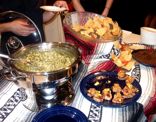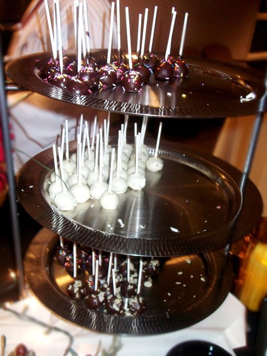 Amy: The two stations that I enjoyed the most were Brio and Mayo Clinic. Brio’s staff was the friendliest of the evening – so accommodating, especially for Taryn’s aversion to meat, and informative. Their Pasta Alla Vodka was quite good – handmade pasta filled with ricotta, garlic and basil with a tomato Parmesan cream sauce. Their Bruschetta was my favorite version of all we tried this evening. The Mayo Clinic’s station was beautiful -their Prosciutto Wrapped Grilled Prawns with Basil Pesto were presented in martini glasses and was a hit among the crowd. Their Cake Lollipops were a whimsical treat. Blue Adobe Grille’s Spinach con Queso was pretty tasty too, served with crisp warm chips.