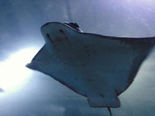 Downstairs, you’ll walk through 300 feet of clear tunnels filled with sharks, bat rays, sting rays and other ocean creations.