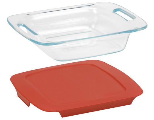 I really like the aesthetic of the dishes – for the Easy Grab line, they’ve acquired a contemporary design that you’ll feel comfortable serving at the table with dinner guests. And, I love the pop of color that the red lids add to my bakeware collection. They slip on and off easily too, and are made of BPA-free materials. After you’ve baked your cake or casserole, simply pop on a lid and store on the fridge! Could it be any simpler?