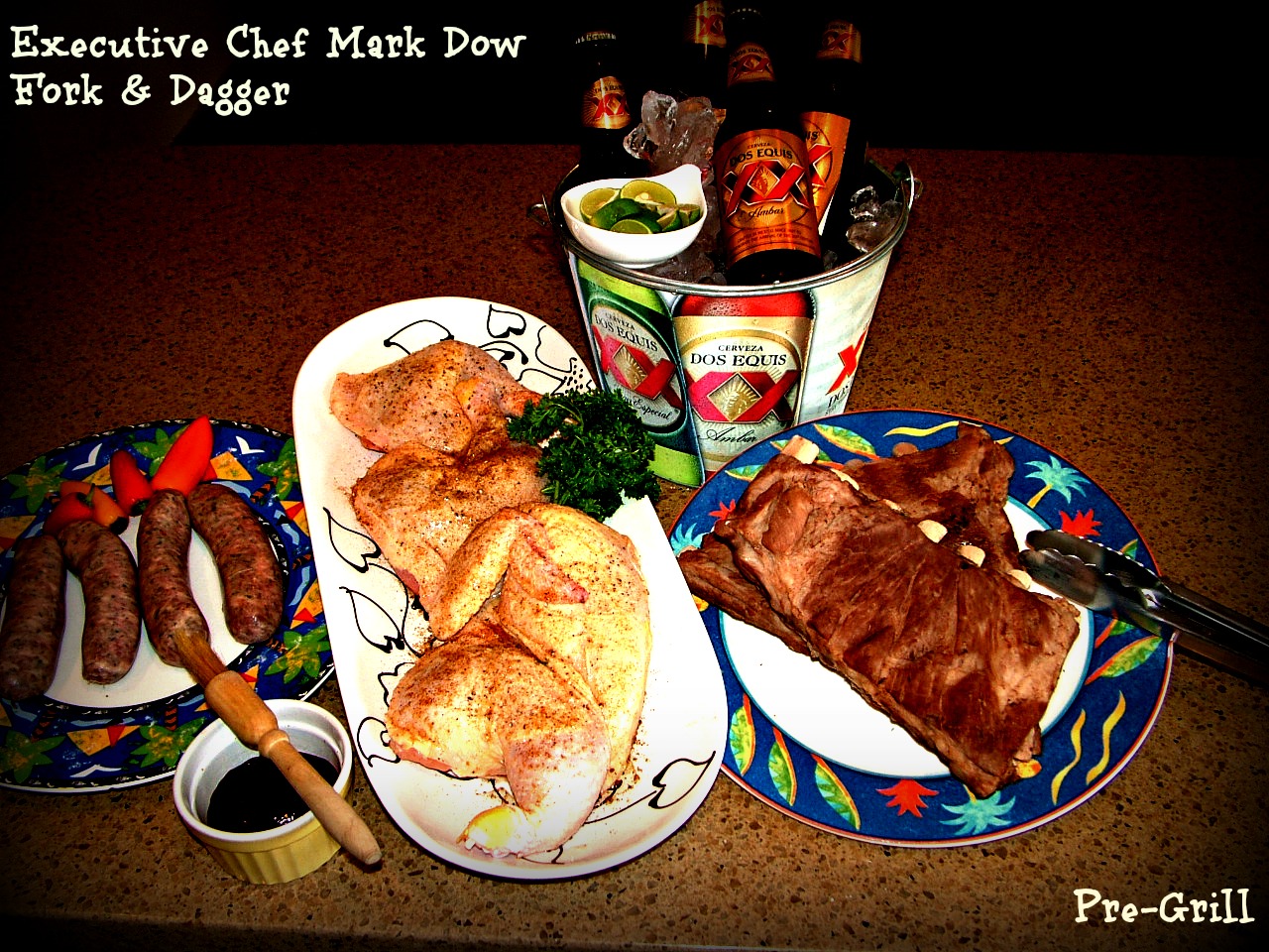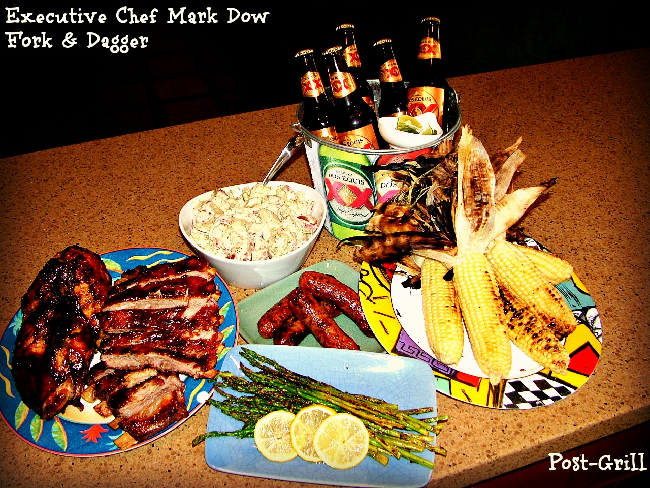 Chef Mark Dow decided on a carnivore’s delight, preparing Barbeque Chicken, St. Louis Slow Cooked Ribs, Sicilian Sausage, Grilled Corn, Grilled Asparagus and German Style Potato Salad.