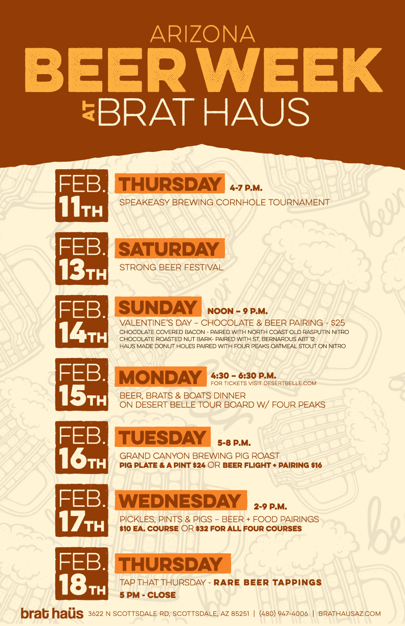 Arizona Beer Week is back, and Brat Haus has big plans to celebrate craft beer with a week full of themed events that will keep spirits high, bellies full and taste buds tantalized.